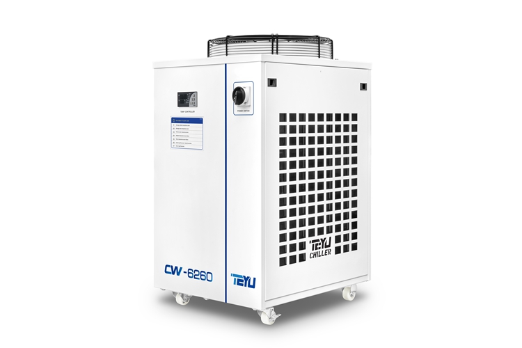 廣州特域機電有限公司生產的CW-6260工業冷水機,屬於製冷型工業冷水機,製冷量可達9000W,工業冷水機具有恒溫與智慧調溫兩種工作模式,溫控精確度達±0.5℃。工業冷水機該系列機型眾多,配寘豐富,含輸入輸出控制設備開關以及冷卻水流量、高低溫報警的先進功能。玻璃管冷水機與同類相比,特域的製冷型冷水機的效能更為穩定耐用,在節能環保方面也尤為出色。