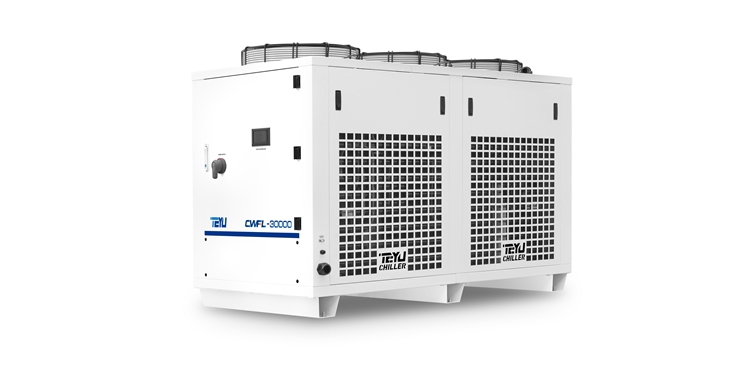 特域CWFL-30000鐳射冷水機,滿足30000W光纖鐳射切割機/焊接機的降溫需求;兩個獨立的溫控系統,同時冷卻雷射器和切割頭/焊接頭,一機多用,節省成本,節省安裝空間。