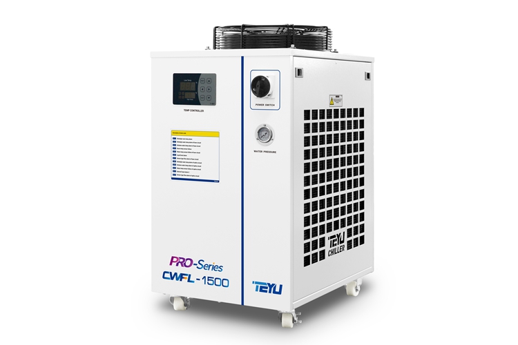 特域CWFL-1500雙溫冷水機,專門為1500W光纖雷射器冷卻而設計,能夠同時冷卻光纖雷射器和鐳射頭,一臺多用。CWFL-1500採用雙溫雙控模式全方位為光纖雷射器提供溫控解決方案,同時,用戶可根據實際需求,可手動設定水溫或切換到智能溫控工作模式。底部萬向腳輪,方便移動和安裝;頂部風扇利於冷水機自身散熱;側鈑金卡扣式安裝,方便定期清理防塵網灰塵。